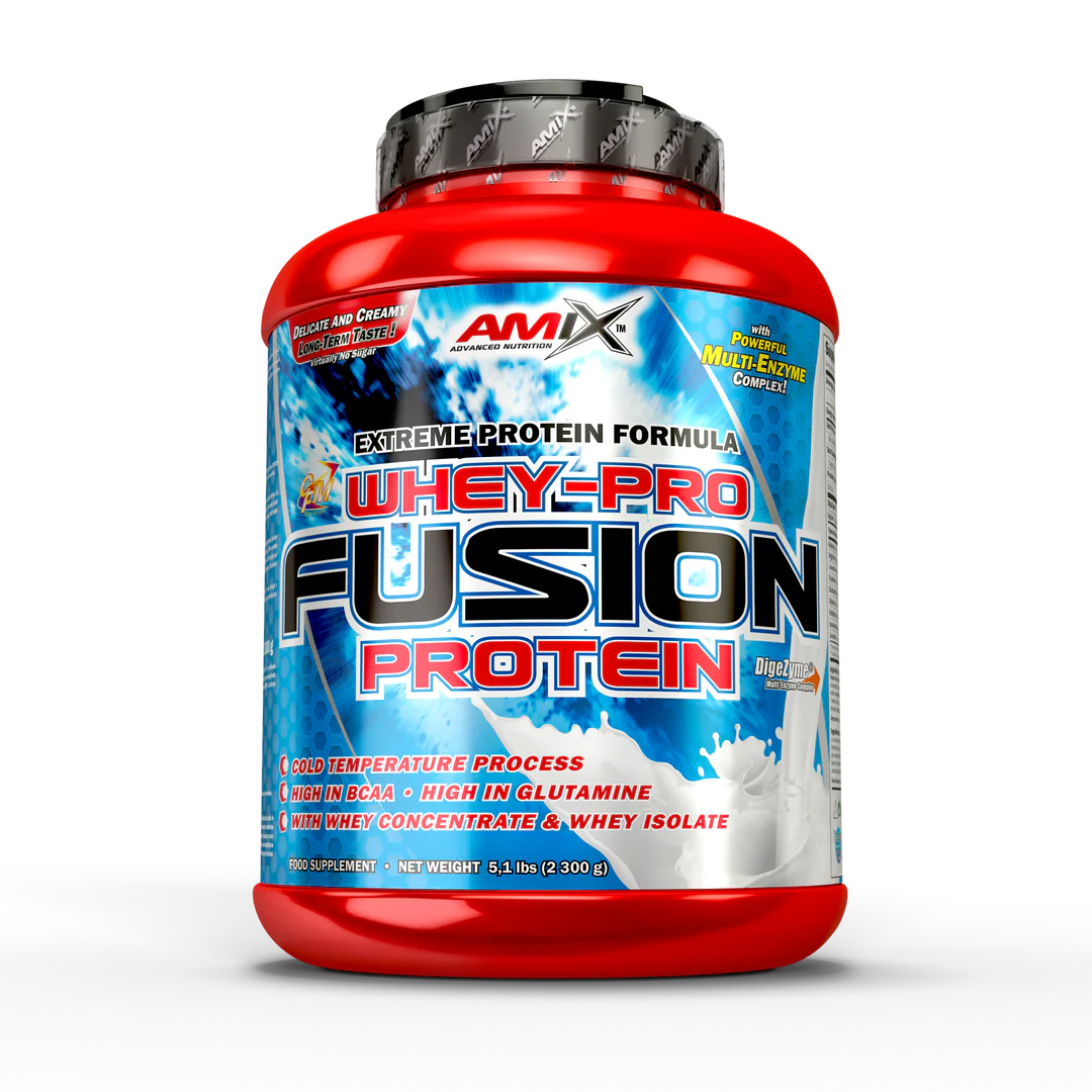 Whey Pure Fusion Protein de Amix™ es una proteína en polvo de alta calidad que combina concentrado de proteína de suero (WPC) y aislado de suero microfiltrado por flujo cruzado (CFM®). Su formulación avanzada ofrece un 75% de contenido proteico por dosis, proporcionando una fuente completa de aminoácidos esenciales, incluidos los BCAA, que favorecen el crecimiento y mantenimiento de la masa muscular.