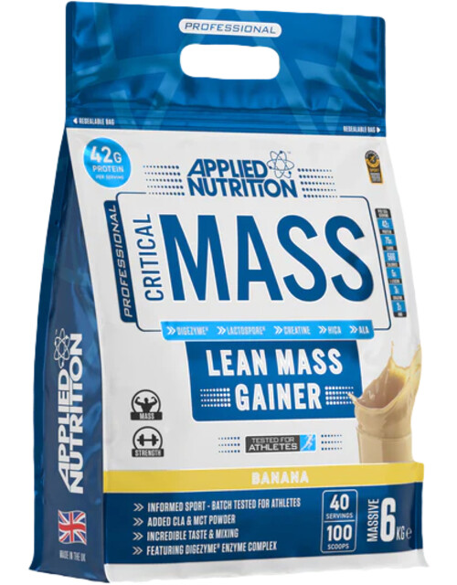 Critical Mass Professional de Applied Nutrition es un ganador de masa muscular “todo en uno” diseñado para atletas y personas activas que desean aumentar su volumen, fuerza y recuperación de forma eficiente. Su fórmula avanzada combina proteínas, carbohidratos, creatina, aminoácidos esenciales y otros compuestos clave para maximizar el rendimiento físico.