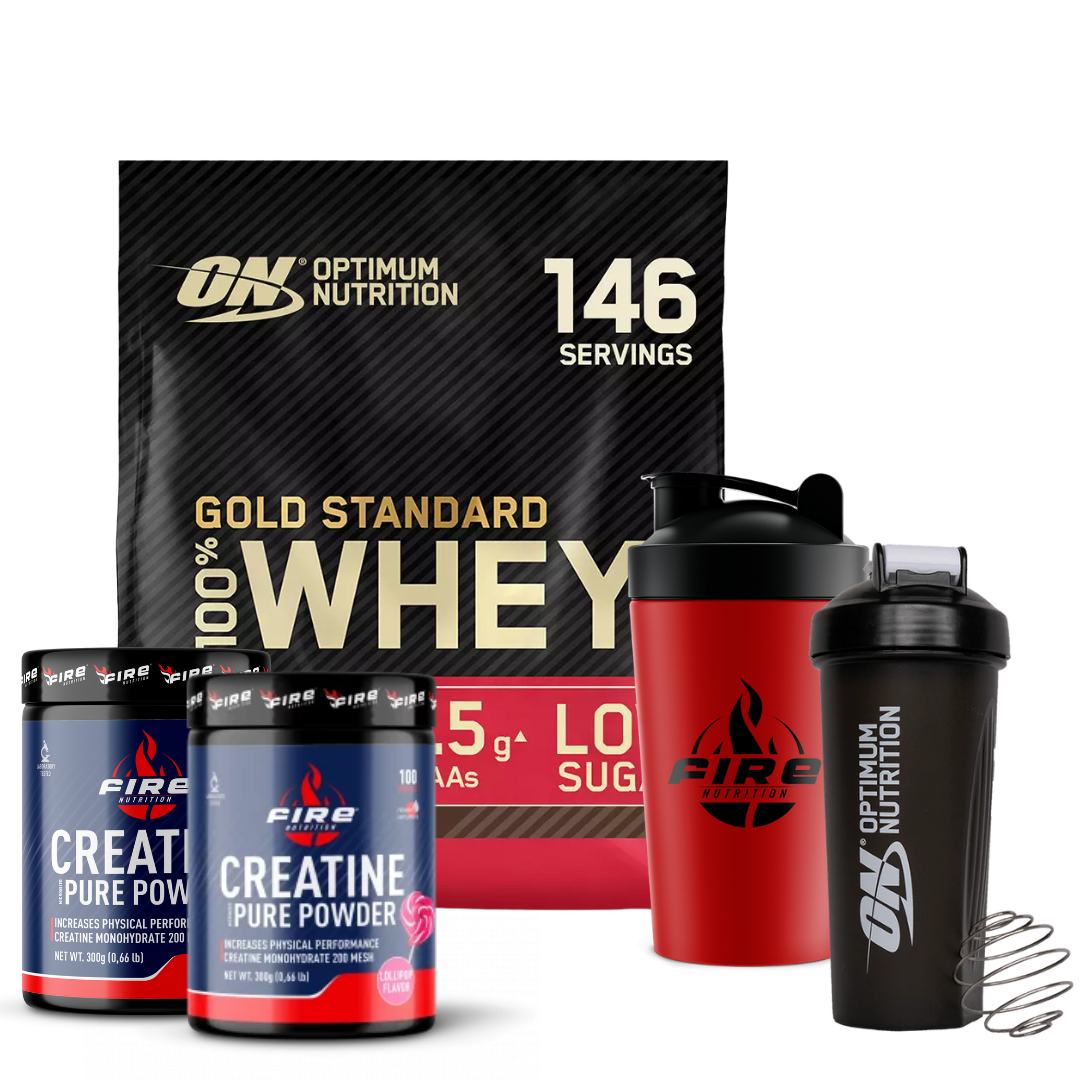 Aprovecha esta oferta exclusiva y lleva tu rendimiento al siguiente nivel con el pack de Optimum Nutrition Gold Standard Whey 4,5 kg + Fire Nutrition Creatine Pure Powder 200 Mesh. ¡Compra ahora y empieza a notar la diferencia en tu entrenamiento!