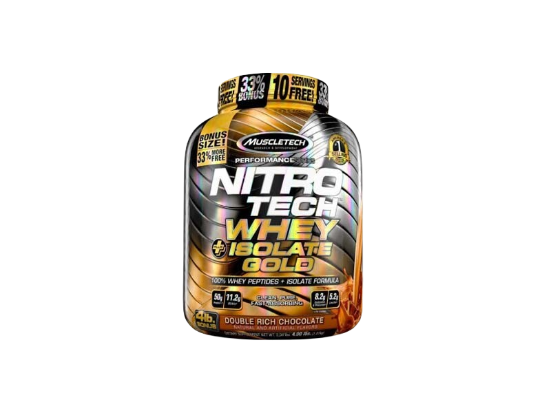 SABORES MUSCLETECH NITRO TECH WHEY + ISOLATE GOLD 1.8 KG Doble Chocolate.